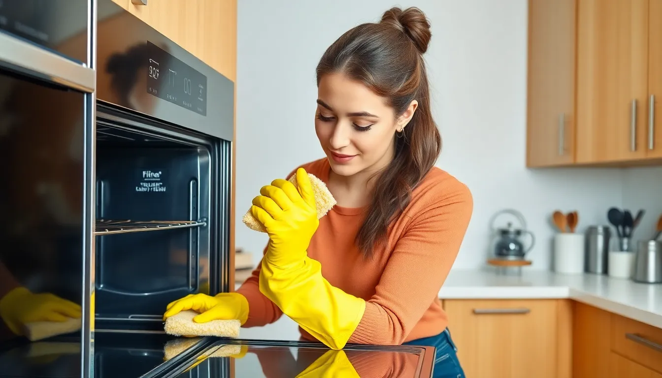 Remove baked-on grease with a simple mixture of baking soda and water. Create a paste, apply it to greasy areas, and let it sit for 15-30 minutes. Scrub with a sponge or cloth for effective removal. For tougher stains, use vinegar spray to enhance the cleaning power. Keep the oven door closed during the process, allowing the steam to work its magic.